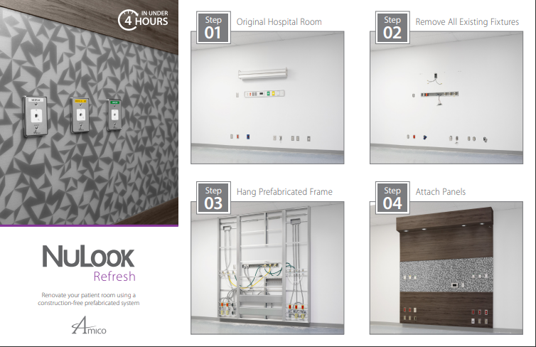 Our NuLook Refresh system gives you the ability to add and move any services (med gas, electrical, data, & moreā¦) without breaking into the walls or cutting into pipes. NuLook Refresh also gives you the ability to change the look, functionality, and acuity of any hospital room while avoiding the length and cost of a traditional construction project.